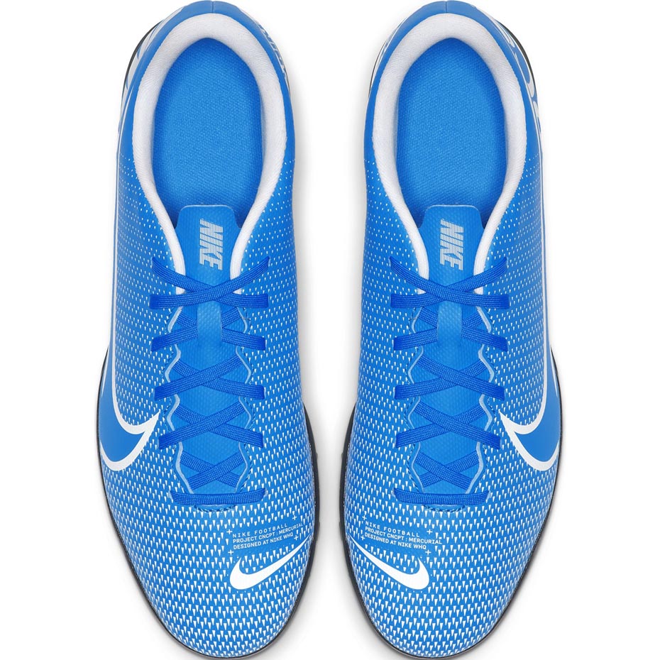 Męskie buty piłkarskie Nike Mercurial Vapor 13 przeznaczone do gry na sztucznych nawierzchniach trawiastych (turf). Pochodzą z kolekcji New Lights. Cholewka wykonana z miękkiej skóry syntetycznej, odpowiada za trwałość i lepsze czucie. Wytłoczony wzór umożliwia lepszy kontakt z piłką. Twarzą linii Mercurial jest Cristiano Ronaldo. Poziom: rekreacyjne.