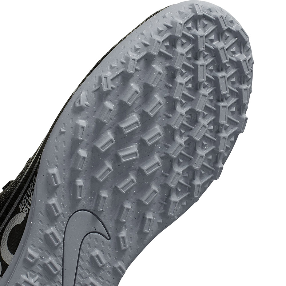 Buty piłkarskie dla dzieci Nike Mercurial Vapor 13 przeznaczone do gry na sztucznych nawierzchniach trawiastych (turf). Pochodzą z kolekcji Under the Radar. Cholewka wykonana z miękkiej skóry syntetycznej, odpowiada za trwałość i lepsze czucie. Wytłoczony wzór umożliwia lepszy kontakt z piłką. Twarzą linii Mercurial jest Cristiano Ronaldo. Poziom: rekreacyjne.