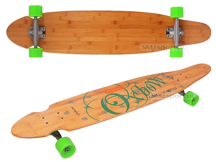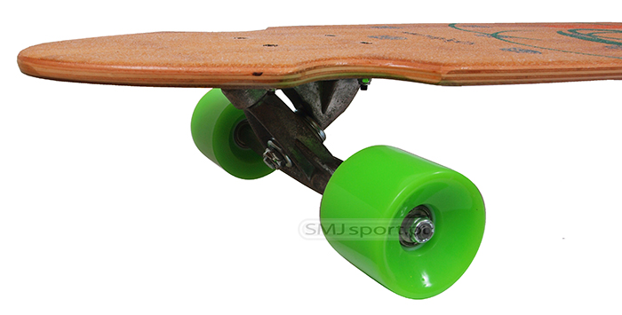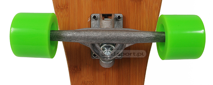 Świetna deskorolka longboard – 9 warstwowa – 2 warstwy wierzchnie bambus, 7 warstwa wewnętrznych klon kanadyjski, zapewnia to odpowiednią giętkość a jednocześnie trwałość. Na górną warstwę nałożono specjalną powłokę antypoślizgową. Longboard posiada mocne aluminiowe tracki zamontowane w systemie Reverse King Pin, co zwiększa jeszcze bardziej stabilność i giętkość. Szerokie kółka PU zapewniają super prędkość i wiele możliwości podczas downhill’owych i cruising’owych szaleństw.