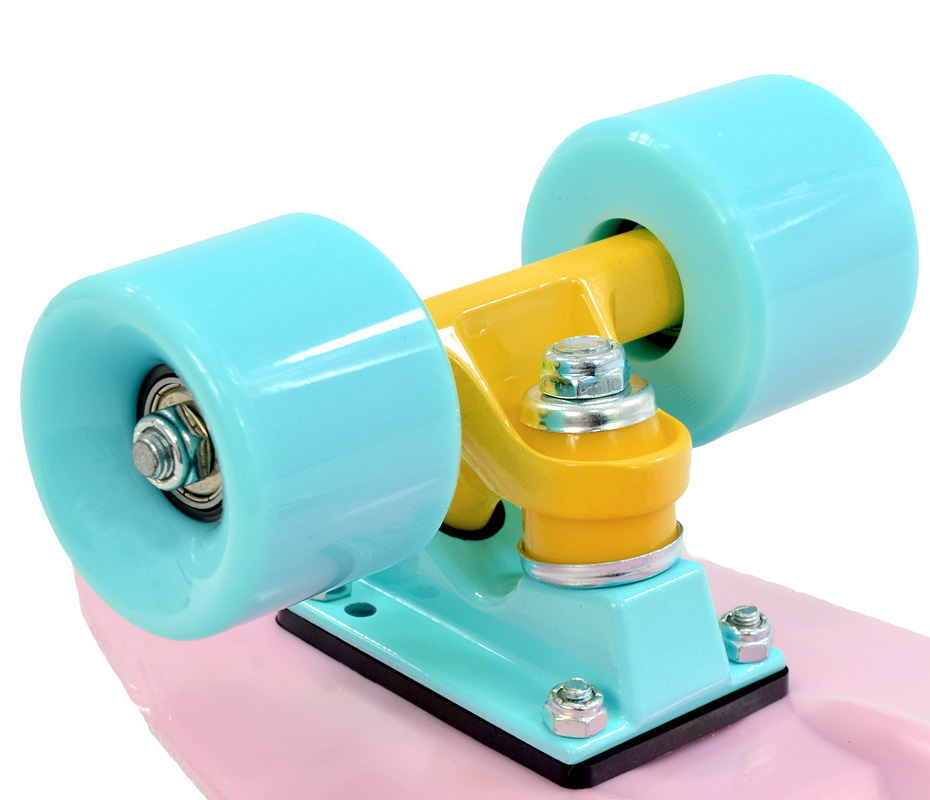 Deskorolka UT-2206 Lily firmy SMJ to najnowszy trend wśród fanatyków jazdy na deskorolce. Dzięki swoim niewielkim wymiarom, i szerokim kółkom gwarantuje szybkie i zwrotne przemierzanie ulic i alejek. Nowoczesne aplikacje i kolory przyciągną wzrok każdego na Twojej drodze. Deck wykonany z tworzywa sztucznego o fakturze antypoślizgowej, wzmocniony od spodu, co znacznie zwiększa bezpieczeństwo podczas jazdy.