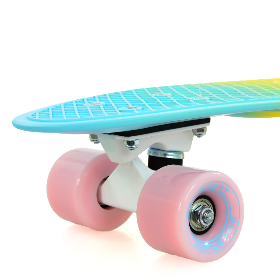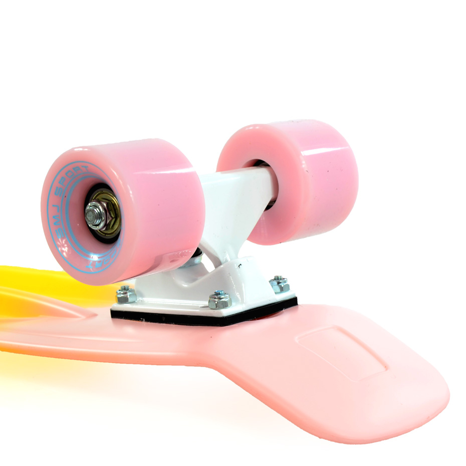 Deskorolka UT-2206 od firmy SMJ. Jej niewielki wymiary, i szeroki kółka gwarantują szybkie i zwrotne przemierzanie ulic i alejek. Deck wykonany z tworzywa sztucznego o fakturze antypoślizgowej, wzmocniony od spodu, co znacznie zwiększa bezpieczeństwo podczas jazdy.