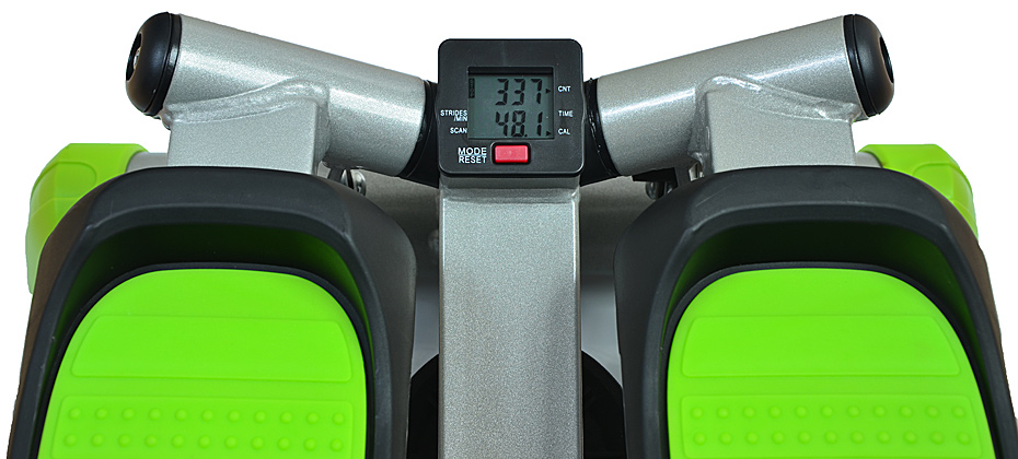 Stepper posiada wbudowany komputer z wyświetlaczem LCD. Na wyświetlaczu odczytasz ilość przebytych kroków, czas treningu, spalone kalorie. Po zakończonym treningu licznik można wyzerować przyciskiem pod wyświetlaczem.